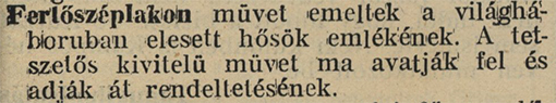 2. § Minden község (város) anyagi erejének megfelelő, méltó emléken örökíti meg mindazoknak nevét, akik lakói közül a most dúló háborúban a hazáért életüket áldozták fel."