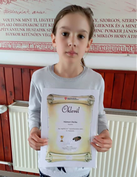 Czifra Luca, Eszes-Árvai Solt, Hámori Dorka, Kádár Huba, Kászoni Boglárka, Krauszpek Dorka, Tóth Dorina, Marchnini Federico és Nagy Levente Bulcsú alkotásait küldtük tovább. Nagy örömünkre Hámori Dorka harmadik helyezést ért el pályamunkájával. A rajzok elkészítésénél fő szempont volt, hogy a pályamű tükrözze: a résztvevő gyermekek miben tudják kivenni a részüket az otthoni feladatokból, a családban betöltött szerepüket, és a család mindennapjaiban betöltött feladataikat. Szívből gratulálunk a díjazott tanulónak! Köszönjük minden pályázó gyerek kitartó, szorgalmas, sikeres munkáját és a felkészítő pedagógus, Jorsits-Tóth Alexandra támogatását.