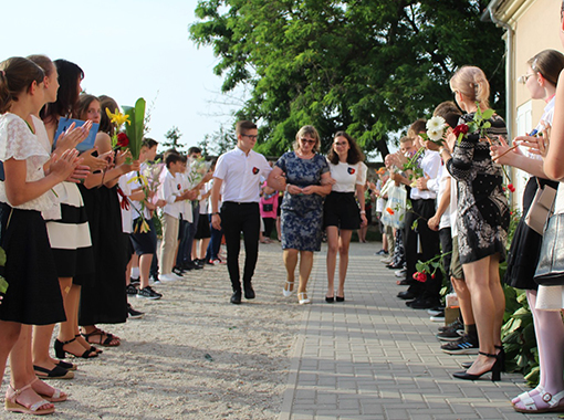 A Diákönkormányzat elnöke és alelnöke ezután visszakísérte igazgató asszonyt a Széchényi-kastélyból az iskolába. Az iskola udvarán, aulájában és folyosóján diákok, szülők és pedagógusok közösen álltak sorfalat igazgató asszony tiszteletére.