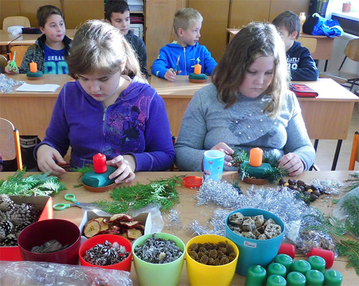 Nagyon változatos programot kínáltunk tanulóink számára. A hetedik és nyolcadik osztályos diákok osztályfőnökeik kíséretében a soproni Pályaválasztási Kiállításon vettek részt. Ötödik és hatodik osztályos tanulóink forgó színpad szerűen négy szakmával ismerkedhettek meg interaktív módon. Az egyik teremben virágkötő segítségével karácsonyi asztaldíszt készítettek a felsősök. A másik helyszínen a varrónői szakma szépségeit mutatta be két tanulónk édesanyja. Varrtak és hímeztek a lelkes gyerekek. Nagy érdeklődéssel hallgatták a jelenlevők a rendőrség munkájáról szóló ismertetőt is. A negyedik helyszínen a vadgazda mérnök szakmával való ismerkedés, a szakmával kapcsolatos eszközök bemutatása volt a cél.
