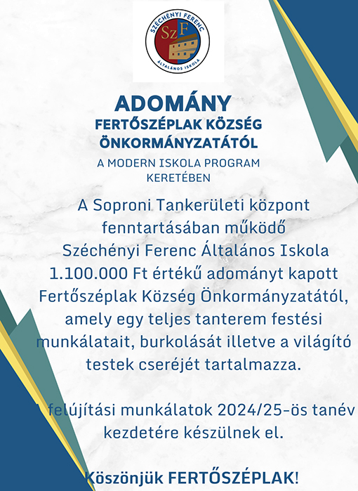 A tanév során mindig segítő kezet nyújtott programjaink megvalósításában a Szülői Szervezet, a Soproni Tankerület, Fertőszéplak és Sarród Önkormányzata, a polgármester urak, a jegyző asszony és a fertőszéplaki képviselő-testület. Ez iskolánk külső, pozitív megítéléséhez nagyon fontos. A község Önkormányzatának folyamatos figyelme, anyagi és erkölcsi támogatása jelentősen hozzájárul a nyugodt pedagógiai munkához, terveink megvalósításához.