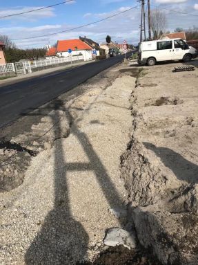 A rendszerekkel érintett szakaszokon a közmű bekötések, gerincvezeték feltárásának kutatóárok készítése folyik.