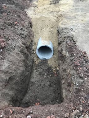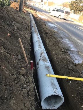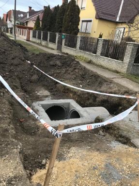 A kivitelezés során a fenti utcákban a közművek feltárása megtörtént. Gerincvezeték építésével párhuzamosan a tervezett műtárgyak, a házi csapadék bekötések is elkészültek.