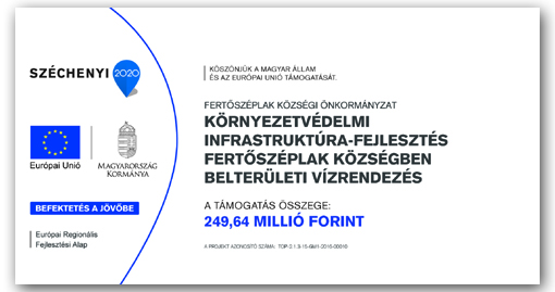 Széchenyi 2020 program keretében 249,64 millió forint vissza nem térítendő európai uniós támogatás felhasználásával valósult meg Fertőszéplak község belterületi vízrendezése.