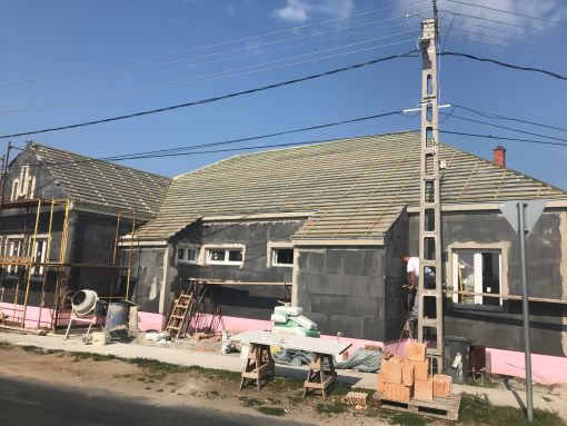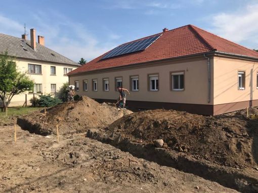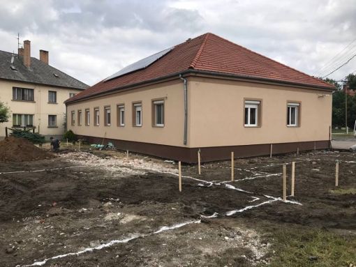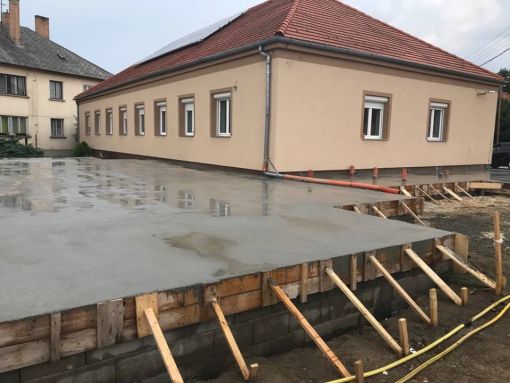 A fertőszéplaki óvodában kivitelezési munkák a megadott árajánlatnak és műszaki tervnek megfelelően történnek. A régi épületrészben megtörténtek a szükséges bontási munkálatok, az új épület szerkezetkész állapotban van. Megtörtént a falazás, tetőépítés, belső válaszfalak felépítése, a nyílászárók beépítésre kerültek, gépészeti alapszerelés és ajzat készítés megtörtént.