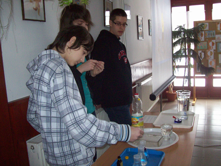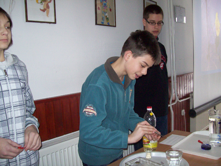 Iskolánk tanulói közösen egy videót tekintettek meg, a vízfolyásokról kaptak rövid képi ismertetőt. Ezt követően interaktív módon történt a téma feldolgozása. Három nyolcadik osztályos tanuló beszámolt a víz élettani szerepéről, fontosságáról, biológiai szerepéről, kémiai tulajdonságairól. Közben Éva néni a témával kapcsolatban kérdéseket intézett tanulóinkhoz. Sok kéz emelkedett a magasba, bizonyítva tanulóink érdeklődését, figyelmét. Szintén ügyes nyolcadik osztályos tanulók egyszerű kísérleteket végeztek a vízzel kapcsolatban, megmutatva a víz fizikai és kémiai tulajdonságait. Tanítványaink nagy örömére a kísérletet meg is ismételhették. Dóra néni a bemutatott kísérleteket biológiai szempontból is vizsgálta, értékelte.
