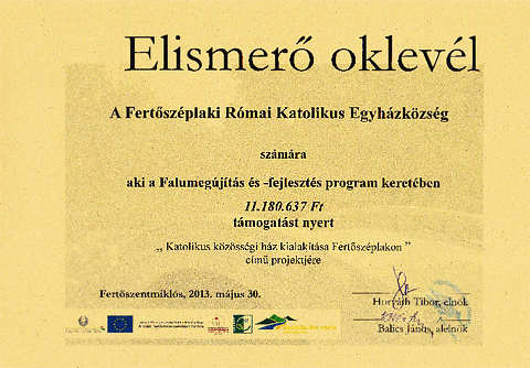 Köszönetemet fejezem ki mindenkinek, akik a pályázat megírásában részt vettek! Köszönöm a közreműködő szervezetnek, a Fertőszéplaki Római Katolikus Egyházközségnek és a Fertőszéplaki Sportkörnek, hogy példásan együttműködtek a pályázat előkészítésében!