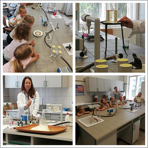 A Soproni Egyetem meghívására az iskolába készülő nagycsoportosainkkal érdekes kémiai kísérleteket nézhettünk meg az egyetem kémiai laborjában. A projektet kifejezetten óvodás korosztály számára fejlesztették ki. Készült "elefánt fogkrém", "láva lámpa", "szellem a palackból". A háztartásban megtalálható alapanyagokat is használt a kémikus, pl. étolajat, szódabikarbónát, ételfestékeket. A gyerekek számára sokszor varázslatnak tűntek a kísérletek. Nagy érdeklődéssel figyeltek. Talán közülük kerülnek majd ki a kémiát kedvelő diákok, és a későbbiekben akár kémikus, vagy kémia tanár is lehet belőlük.