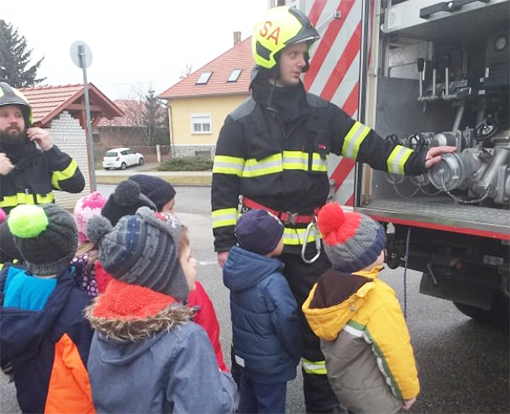 Januárban a "Foglalkozások" témakörhöz kapcsolódva óvodánkba hívtunk mentősöket, tűzoltókat és rendőröket, hogy bemutassák munkájukat, eszközeiket és persze az autójukat.