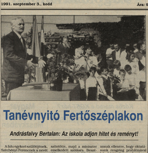 Pontosan 25 évvel ezelőtt történt, hogy Fertőszéplak adott otthont az országos tanévnyitó ünnepségnek, melyet az akkori művelődési és közoktatási miniszter, Andrásfalvy Bertalan is megtisztelt jelenlétével. E jeles napon vette fel iskolánk, településünk egykori szülöttjének, Széchényi Ferencnek nevét.