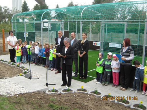 2014. szeptember 26-án került sor intézményünkben – a környéken elsőként - az OVIFOCI pálya ünnepélyes átadására, mely az OVIFOCI Program keretein belül Fertőszéplak Önkormányzata, a támogatást felajánló Velux Magyarország Kft., valamint az OVIFOCI Közhasznú Alapítvány összefogásból valósulhatott meg a gyermekek legnagyobb örömére. Az ünnepélyes átadón részt vett Dr. Molnár Andrea az OVIFOCI Alapítvány elnöke, Dunai Antal úr a Magyar Labdarúgó Szövetség képviseletében és Kóbor Attila Fertőszéplak polgármestere. A fő támogató VELUX Magyarország Kft. Igazgatója - mivel személyesen nem tudott az ünnepségen részt venni - írásos üzenetben osztotta meg velünk gondolatait, méltatta a foci pálya nyújtotta lehetőségeket, valamint örömét fejezte ki, hogy részese lehetett ennek a nagyszerű kezdeményezésnek.