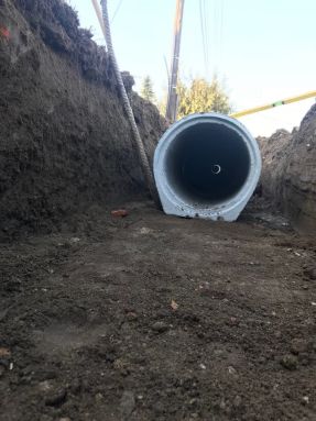 A kivitelezés során a fenti utcákban a közművek feltárása megtörtént. Gerincvezeték építésével párhuzamosan a tervezett műtárgyak, a házi csapadék bekötések is elkészültek.