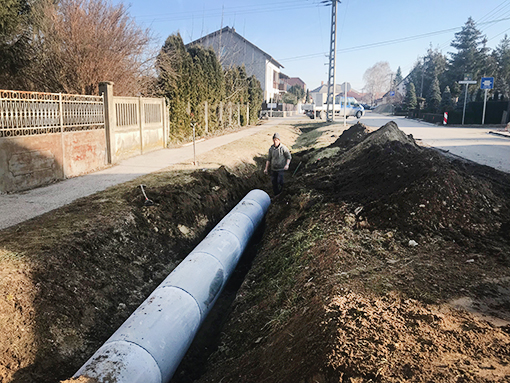 A kiviteli munkáink jelenleg a Hősök tere, Nagy Lajos utca, Petőfi utca, Zrínyi utcai csapadék gerincvezeték és kapcsolódó műtárgyak építésénél tartanak.