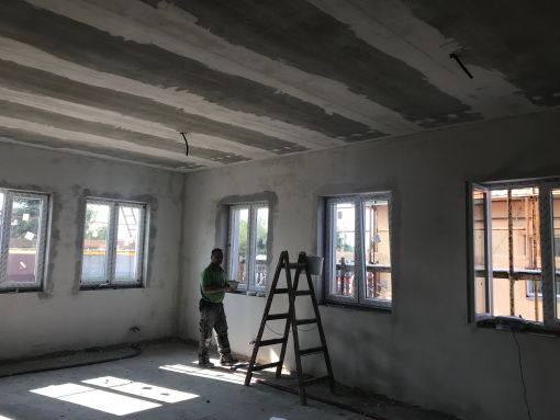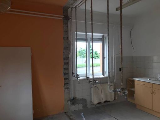 A fertőszéplaki óvodában kivitelezési munkák a megadott árajánlatnak és műszaki tervnek megfelelően történnek. A régi épületrészben megtörténtek a szükséges bontási munkálatok, az új épület szerkezetkész állapotban van. Megtörtént a falazás, tetőépítés, belső válaszfalak felépítése, a nyílászárók beépítésre kerültek, gépészeti alapszerelés és ajzat készítés megtörtént.