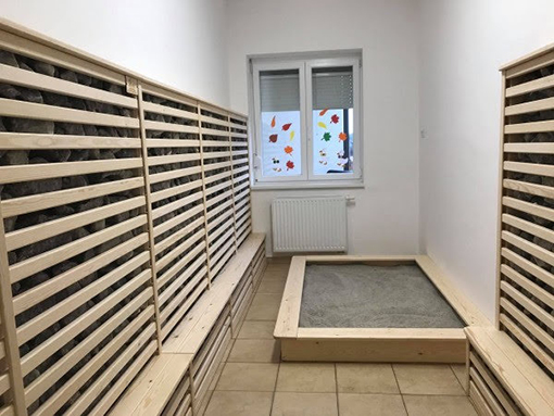 kiépítésére kerül sor, amely biztosítja az akadálymentes közlekedés feltételeit. Az új rész csoport- és tornaszobája, valamint az öltöző és WC –mosdó helyiség szintén lehetővé teszi az akadálymentes közlekedést. Az új részen kialakításra kerülő mosdó-WC helyiségben gyerek mosdók, kiöntő és zuhanyzó is elhelyezésre kerül.