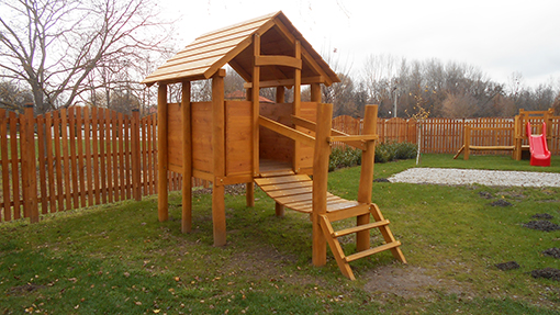Sarród feladat-ellátási helyen a fejlesztés a 600 m2 alapterületű óvodaudvart érinti, ahol jelenleg korszerűtlen és elhasználódott szabadtéri játékok találhatók, esztétikailag és funkcionálisan is kifogásolható környezetben. Az óvodaudvar kerítése több helyen omladozik, a telepített élősövénynek köszönhetően a kisgyermekek nem tudnak a veszélyes kerítés közelébe menni, ami viszont nem jelent biztonságos és megnyugtató megoldást a problémára. Az óvodaudvar felújításánál olyan fiatal, hosszú élettartamú fák ültetése került betervezésre, amelyek több évre-évtizedre biztosítják az óvodaudvar árnyékolását és megfelelő esztétikai képét. Az óvodaudvarra épített fa játékok kerülnek, a jelenlegi elszórt kültéri játék elhelyezés helyett a felújítást követően egymáshoz képest tervezetten, a játékok helyigényét figyelembe véve kerülnek kialakításra a játszózónák. A tervezett kültéri telepített játékok: Mazsola játszóvár, négylábú hintaállvány, homokozó, libikóka, cölöpkunyhó, pókháló mászóka, 2 darab rugós ló kerül kihelyezésre. A kerítés akácfából készül.
