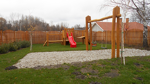 A sarródi tagóvoda udvarán felépült az új kerítés, megtörtént az öntözőrendszer és a növények telepítése. Az új játszótéri játékokat előreláthatólag szeptember közepétől vehetik birtokba kis óvodásaink.